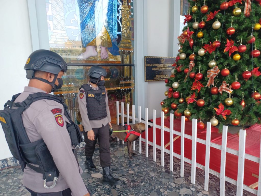 Unit Polsatwa (K9) Dit Samapta Polda Kalimantan Barat melaksanakan kegiatan sterilisasi dan pengamanan di beberapa Gereja di Kota Pontianak dalam rangka memberikan rasa aman dan nyaman kepada umat nasrani dalam merayakan hari Natal tanggal 25 Desember 2022 yang diawali dengan ibadah malam natal tanggal 24 Desember 2022.