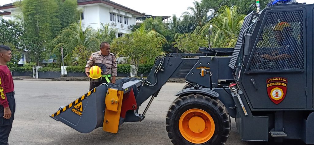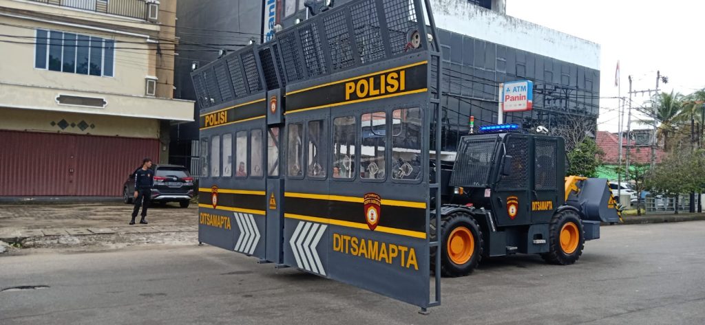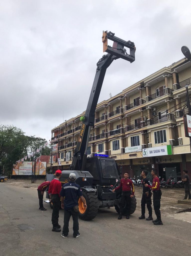 Pontianak Kalimantan Barat, Ditsamapta Polda Kalbar baru baru ini didatangkan dari Korps Sabhara Polri kendaraan taktis berupa telehandler yang berfungsi sebagai barikade / tameng penghalau massa saat penanganan unjuk rasa ( RCU Riot Control Unit ) dan rantis Multiguna yang di produksi tahun 2022 Kamis 8/12/2022