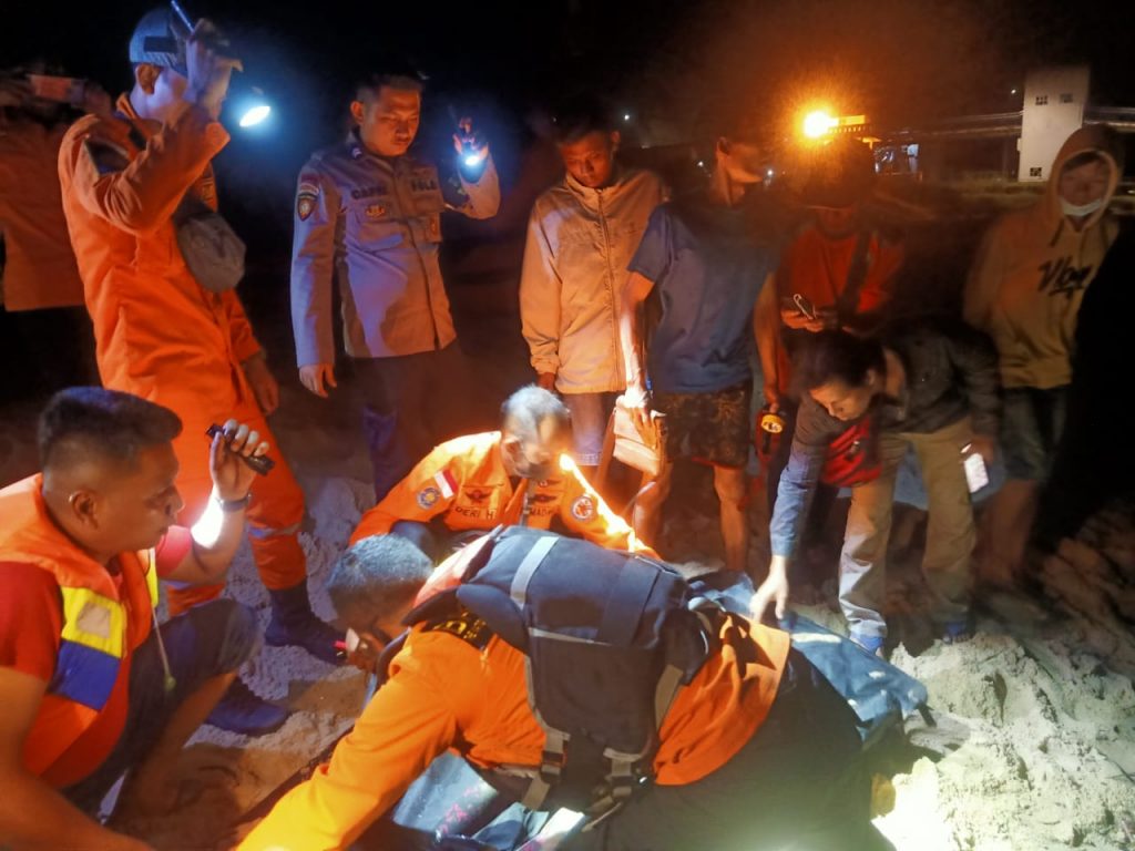 pada pukul 03.50 pagi korban a.n Andini/perempuan ditemukan di pesisir pantai dalam keadaan mengapung di air dan sudah tidak bernyawa , kemudian team melaksanakan evakuasi korban dan sampai saat ini team masih melaksanakan pencarian korban.