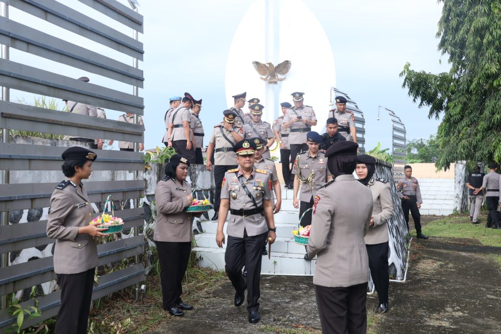 Dalam rangka menyambut hari Bhayangkara ke 78, Kapolda Kalbar Irjen Pol Pipit Rismanto, S.I.K., M.H., pimpin pelaksanaan upacara ziarah makam pahlawan, bertempat di taman Makan pahlawan Dharma Patria Jaya, Senin 24 Juni 2024